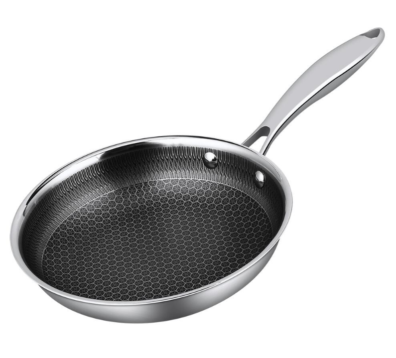 Нержавеющая сталь "TRI-PLY" с уникальной архитектурой рабочей поверхности нанесенной лазером в виде рельефного сотового узора, последующим травлением и нанесением антипригарного покрытия.